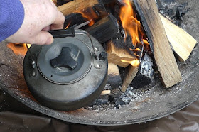 Once the kindling was established I added some more sizeable pieces of seasoned wood to get the fire building, once it was going well and reducing to embers I then introduced the pieces to the centre and formed an ember ring around them. Note that I put the beads in the oil lamp as I'd seen on the course itself.